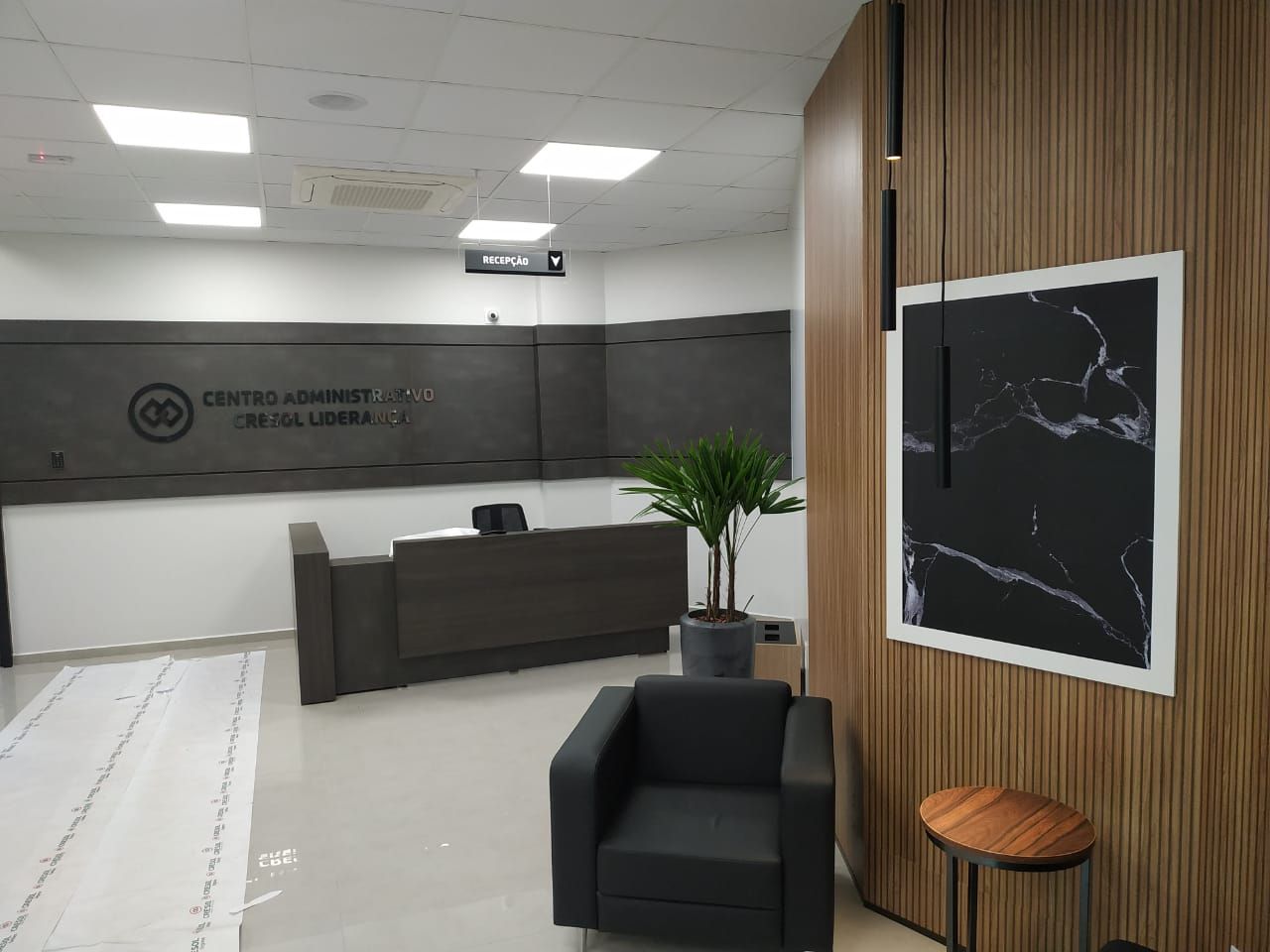 Projetos técnicos e executivos, maquete eletrônica, gestão dos processos e da obra. Execução da obra de reforma e ampliação para implantação do Centro Administrativo. Instalação de divisórias, forros e pisos; execução de caixilhos e vidros, instalação de rede elétrica, lógica, comunicação e de segurança. Fornecimento de luminárias, móveis, itens decorativos, comunicação visual, fachada em ACM e pele de vidro.